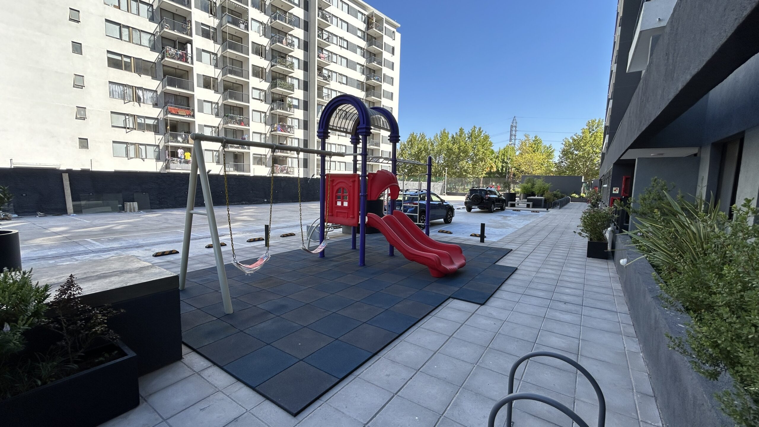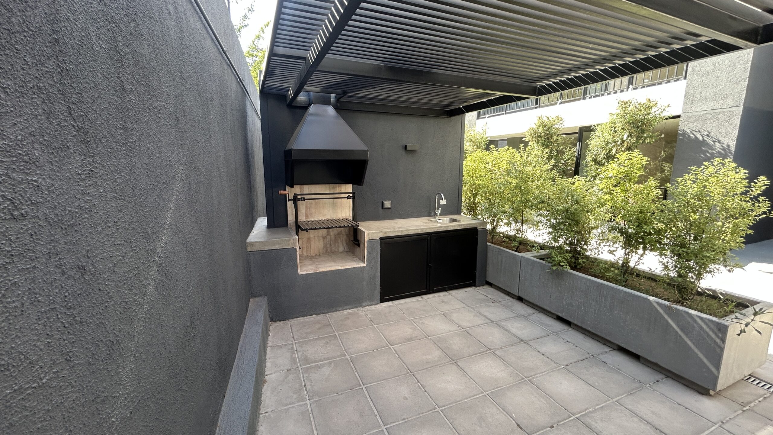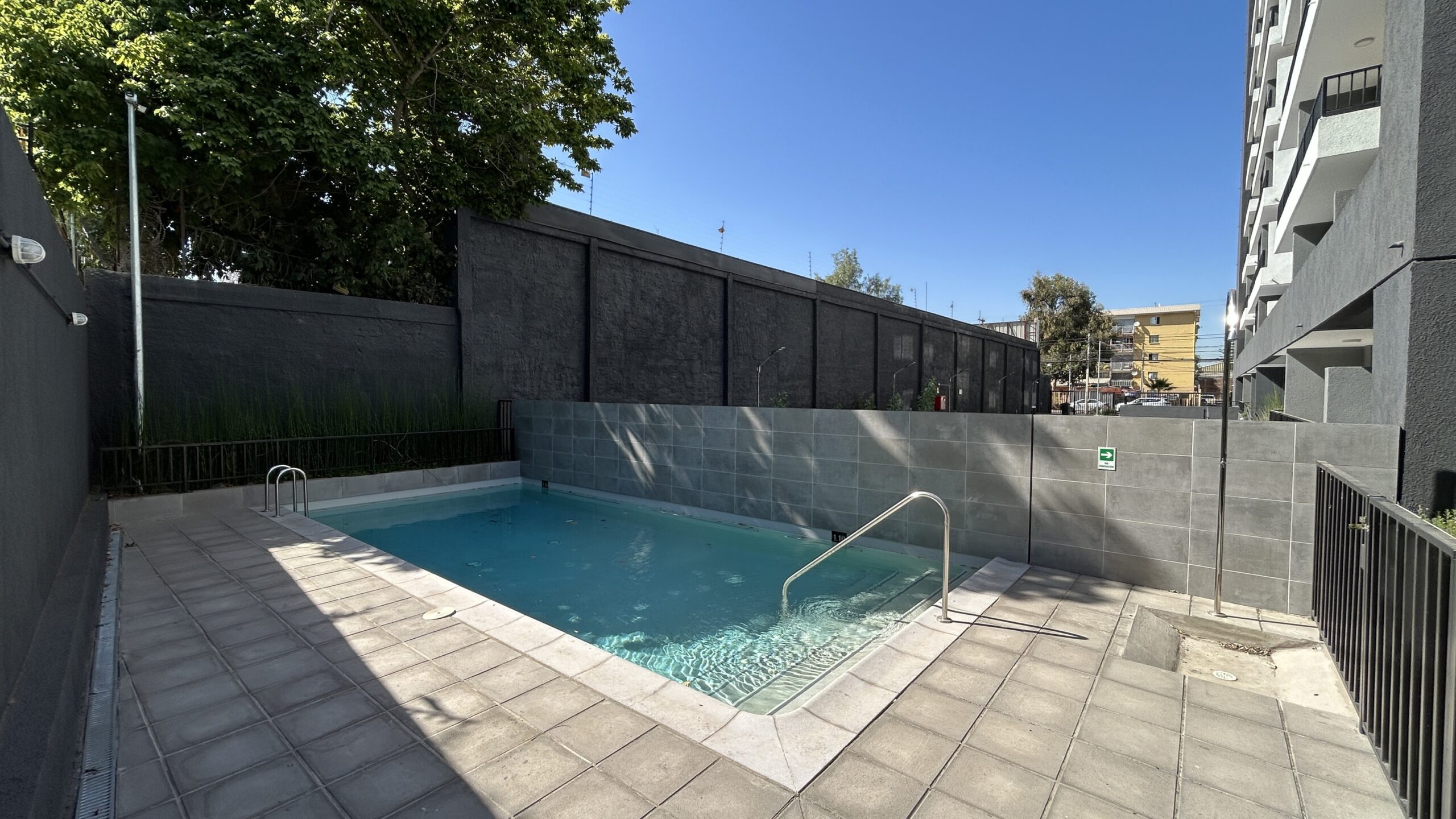 El edificio incorpora espacios pensados para una vida urbana activa, como piscina, quincho, sala multiuso y máquinas de ejercicio al aire libre, además de departamentos con cocina integrada y diseño funcional.
