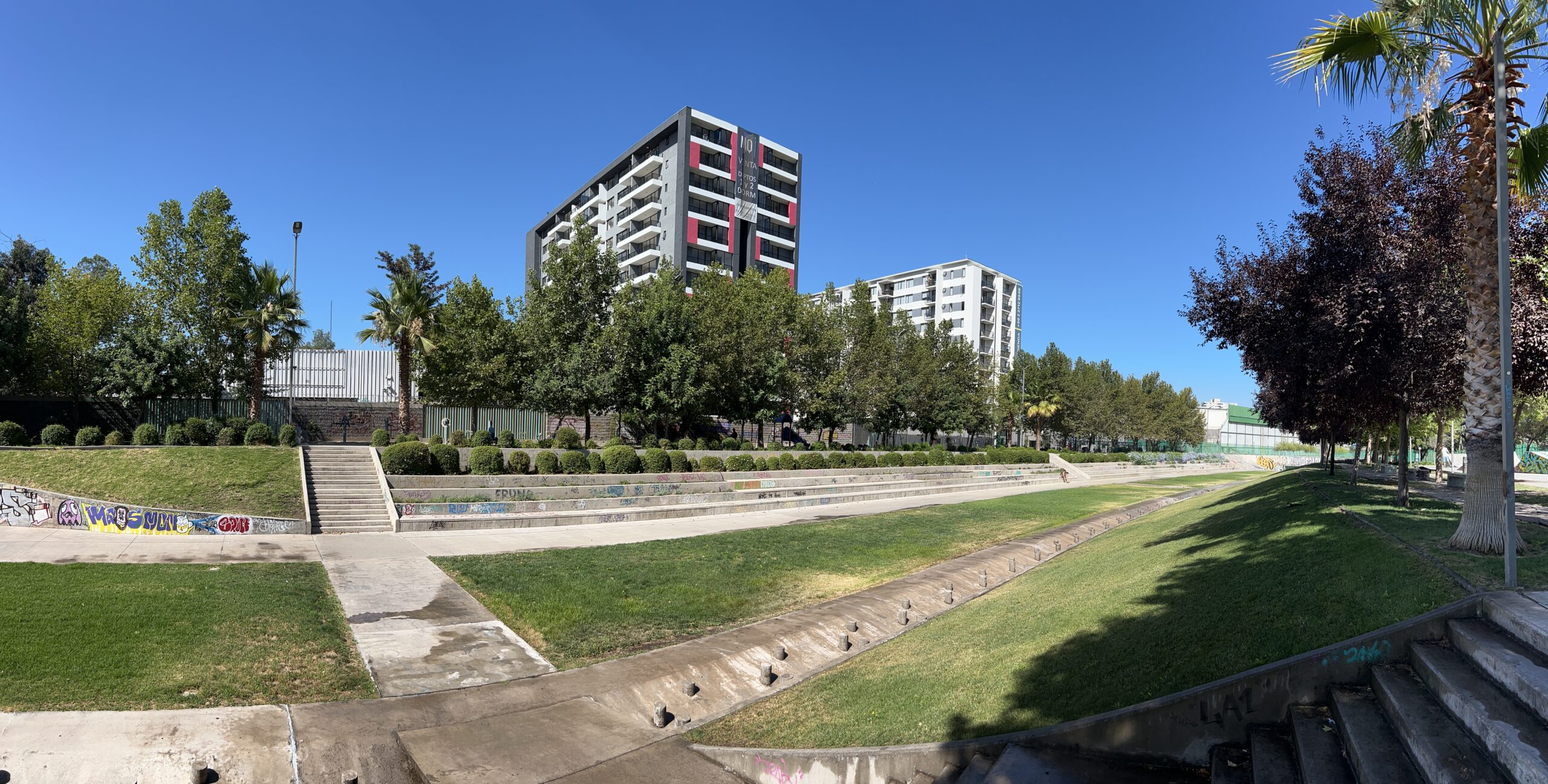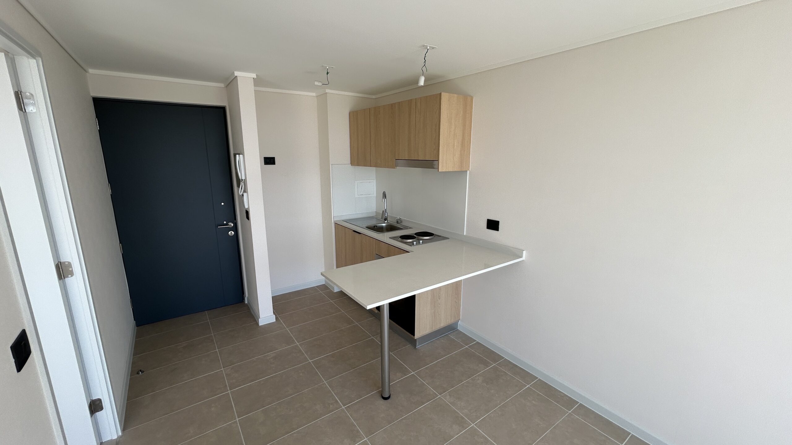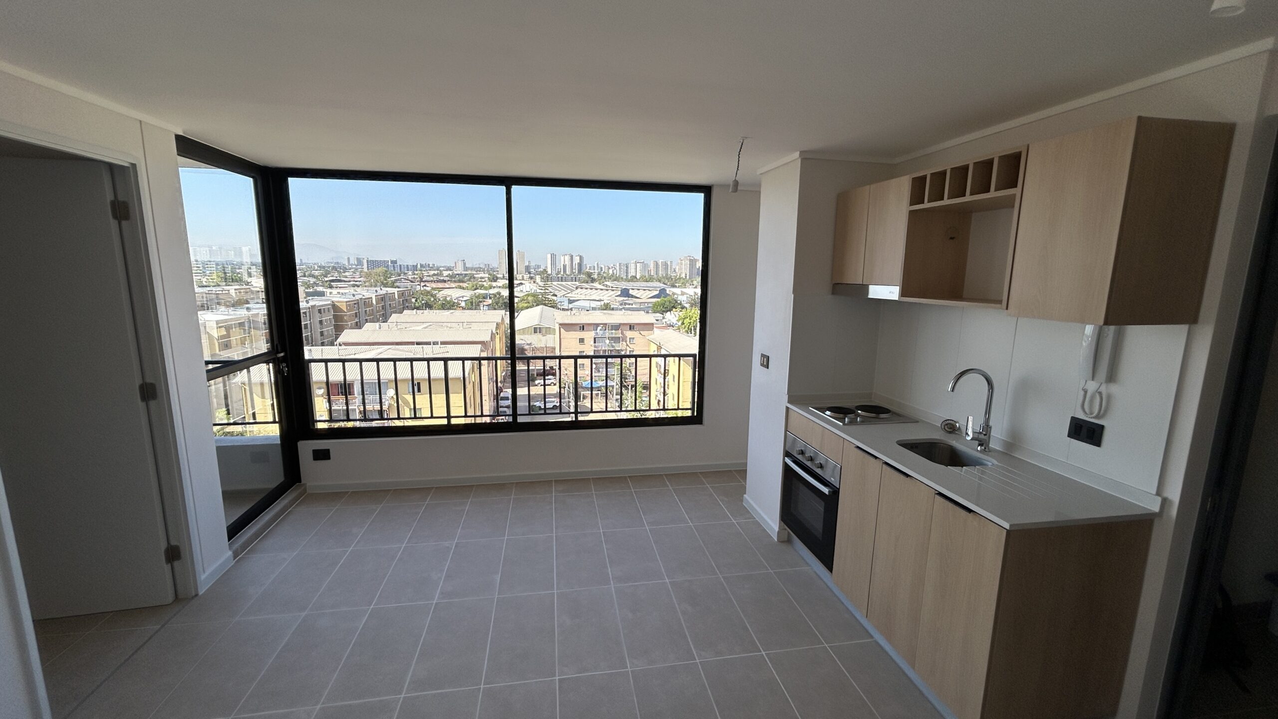 El edificio incorpora espacios pensados para una vida urbana activa, como piscina, quincho, sala multiuso y máquinas de ejercicio al aire libre, además de departamentos con cocina integrada y diseño funcional.